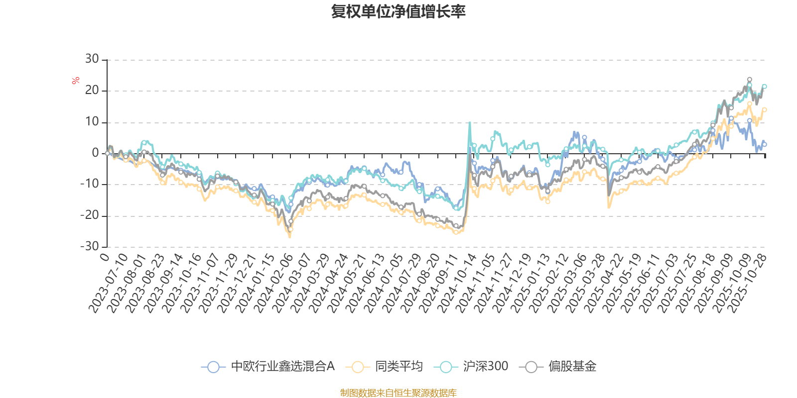 截至10月28日,中欧行业鑫选混合A近三个月复权单位净值增长率为0.61%,位于同类可比基金654/689;近半年复权单位净值增长率为8.27%,位于同类可比基金645/688;近一年复权单位净值增长率为7.89%,位于同类可比基金587/653。