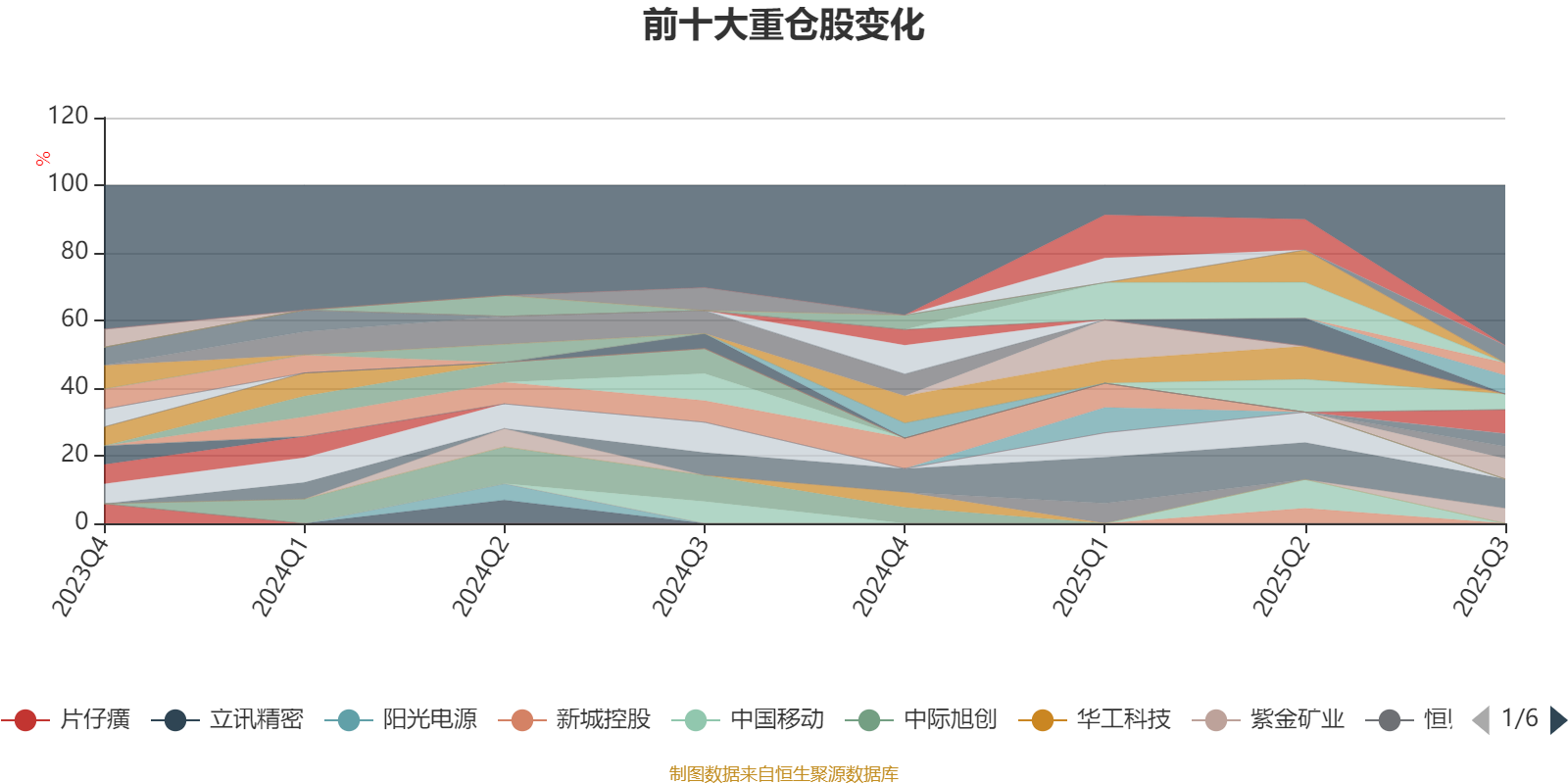 该基金持股集中度较高。截至2025年三季度末,基金十大重仓股分别是腾讯控股、科伦博泰生物-B、三生制药、阿里巴巴-W、博拓生物、恒瑞医药、紫金矿业、中创新航、亿纬锂能、纳科诺尔。
