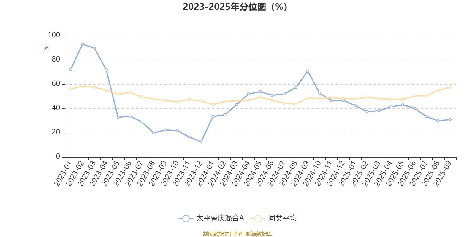 通过所选区间该基金净值增长率分位图,可以观察该基金与同类基金业绩比较情况。图为坐标原点到区间内某时点的净值增长率在同类基金中的分位数。