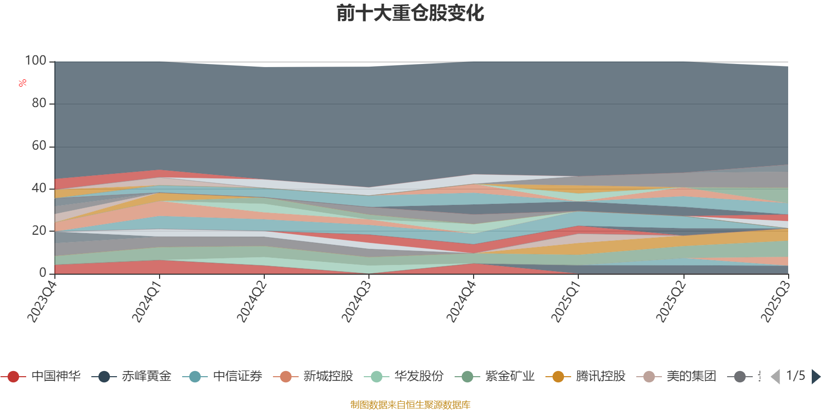 截至2025年三季度末,基金十大重仓股分别是山东黄金、紫金矿业、亿纬锂能、腾讯控股、中国平安、新城控股、赤峰黄金、牧原股份、中国太保、中芯国际。
