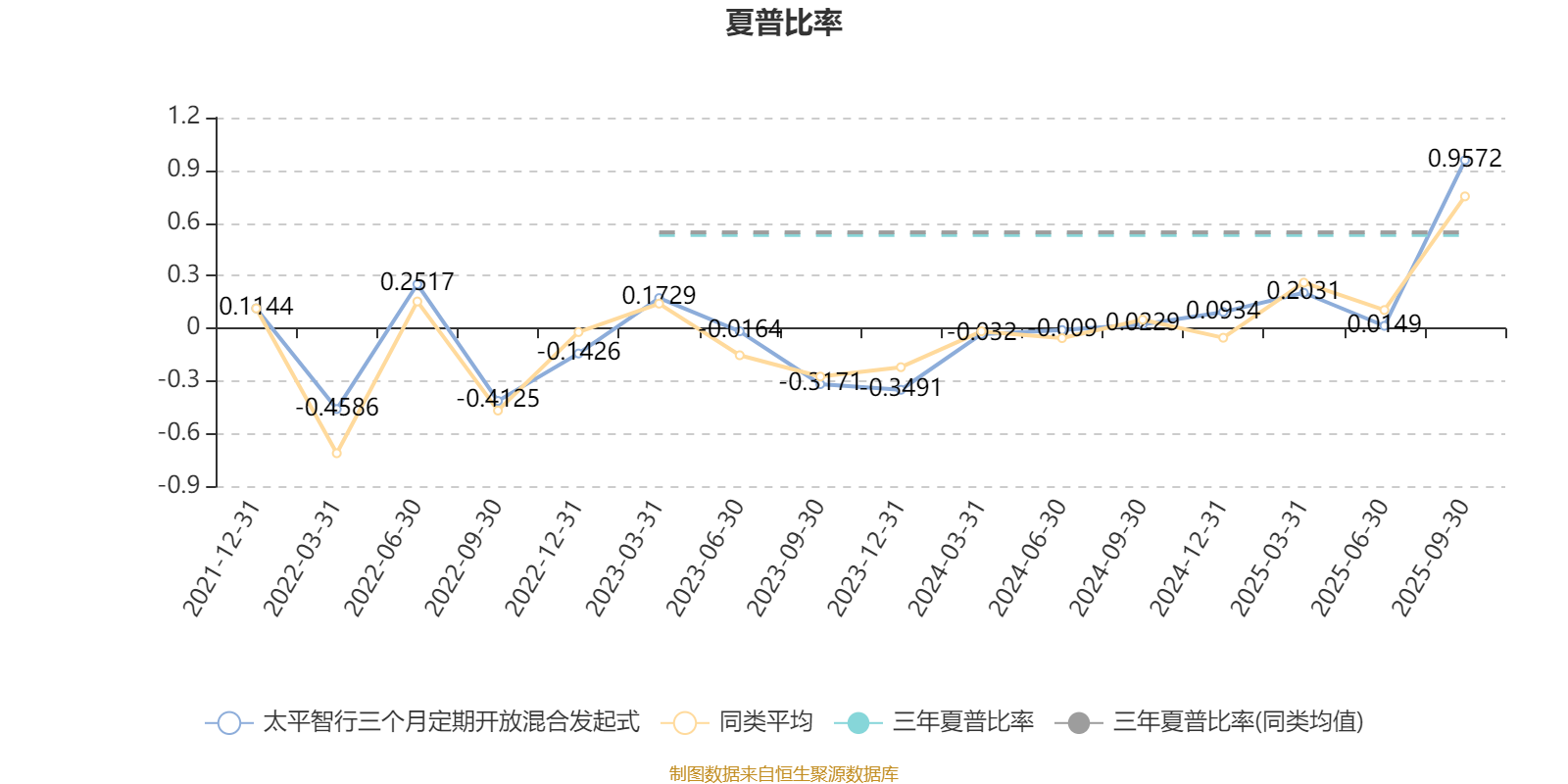 截至9月30日,基金近三年夏普比率为0.532,位于同类可比基金137/252。