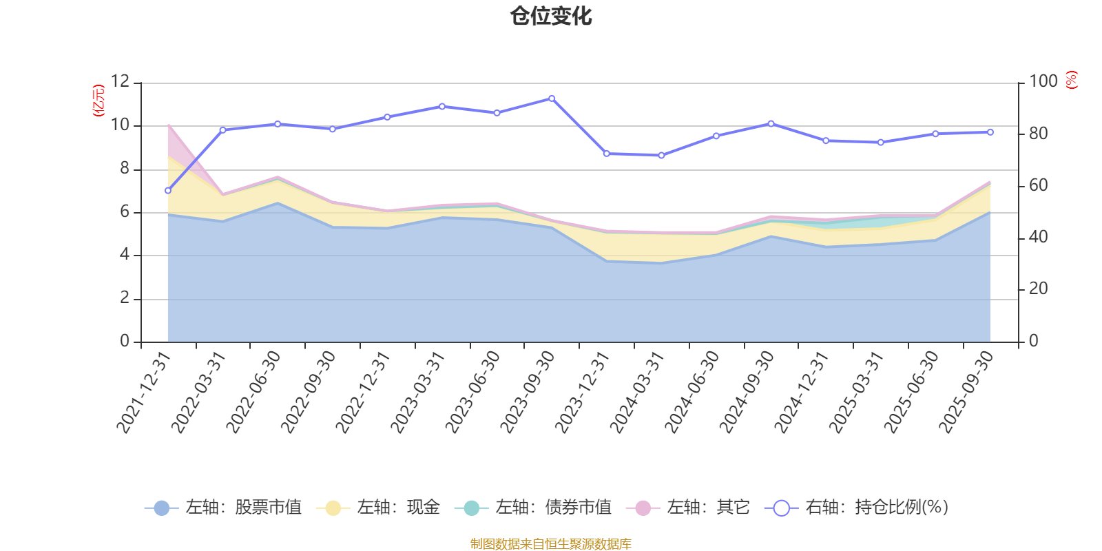 据定期报告数据统计,近三年平均股票仓位为81.99%,同类平均为85.99%。2023年三季度末基金达到93.91%的最高仓位,2021年末最低,为58.4%。