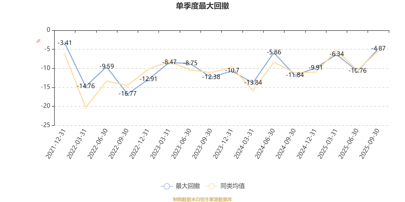 截至10月28日,基金近三年最大回撤为34.08%,同类可比基金排名113/251。单季度最大回撤出现在2022年三季度,为16.77%。
