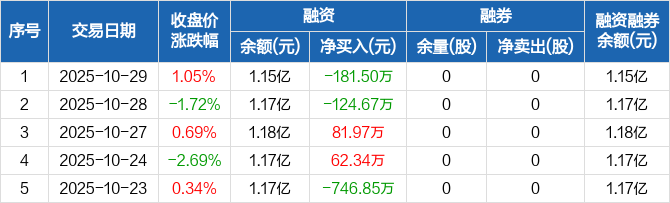 潞化科技:融资余额1.15亿元,创近一年新低(10-29)