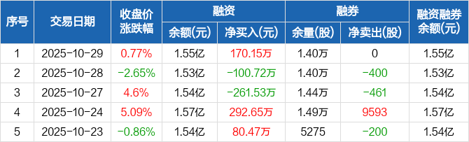 上海合晶:融资净买入170.15万元,融资余额1.55亿元(10-29)