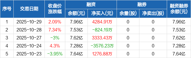 德科立:融资净买入4284.91万元,融资余额7.96亿元(10-29)