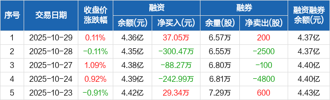 艾迪精密:融资净买入37.05万元,融资余额4.36亿元(10-29)