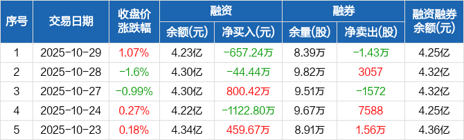 圣湘生物:融资净偿还657.24万元,融资余额4.23亿元(10-29)