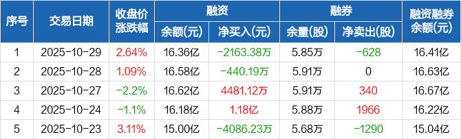 传音控股:融资净偿还2163.38万元,融资余额16.36亿元(10-29)