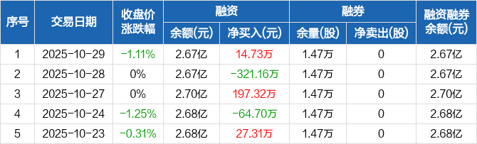 天宸股份:融资净买入14.73万元,融资余额2.67亿元(10-29)