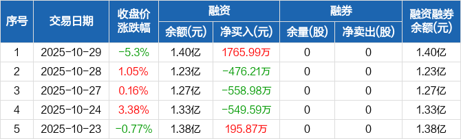 凯立新材:融资净买入1765.99万元,融资余额1.4亿元(10-29)