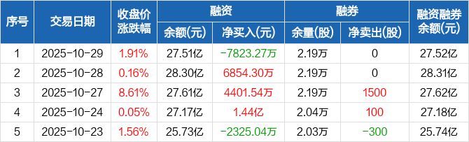 闻泰科技:融资净偿还7823.27万元,融资余额27.51亿元(10-29)