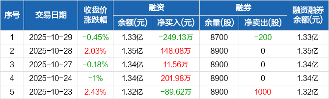 万盛股份:融资净偿还249.13万元,融资余额1.33亿元(10-29)