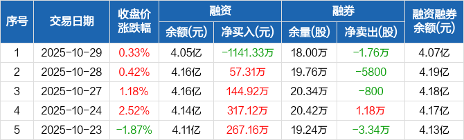 南京熊猫:融资净偿还1141.33万元,融资余额4.05亿元(10-29)