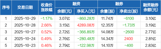 中国海防:融资净偿还860.28万元,融资余额3.07亿元(10-29)