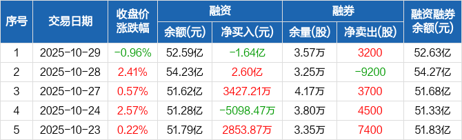 豪威集团:融资净偿还1.64亿元,两市排名第11(10-29)