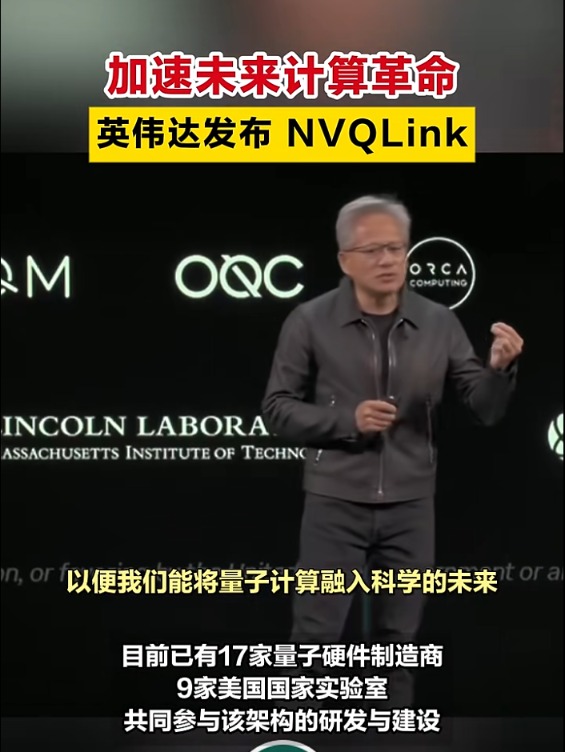 在过去两年,芯片巨头英伟达已与多家量子硬件初创公司、国家实验室展开合作,并推出了量子模拟软件cuQuantum,用于在GPU上高效模拟量子电路运算。NVQLink的问世,标志着英伟达正式把量子计算纳入其“AI算力体系”的主线。