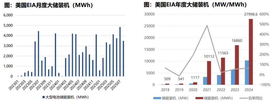 国内外大储景气度来临,国内储能模式创新。①美国:25年1-8月累计装机8043MW,同比+33%,对应25.1GWh,同比+46%;政策风险基本缓解。②国内:独立储能接力新能源配储,容量电价政策陆续配套出台,国内储能有望实现强劲增长。25年1-9月国内储能招标102GWh,同比增长30%,招标景气度旺盛。