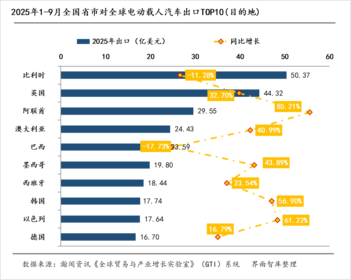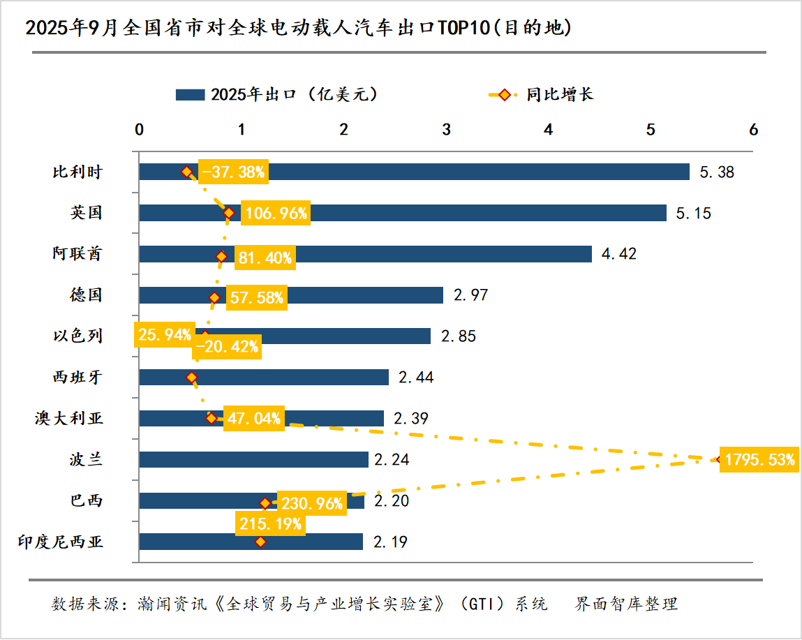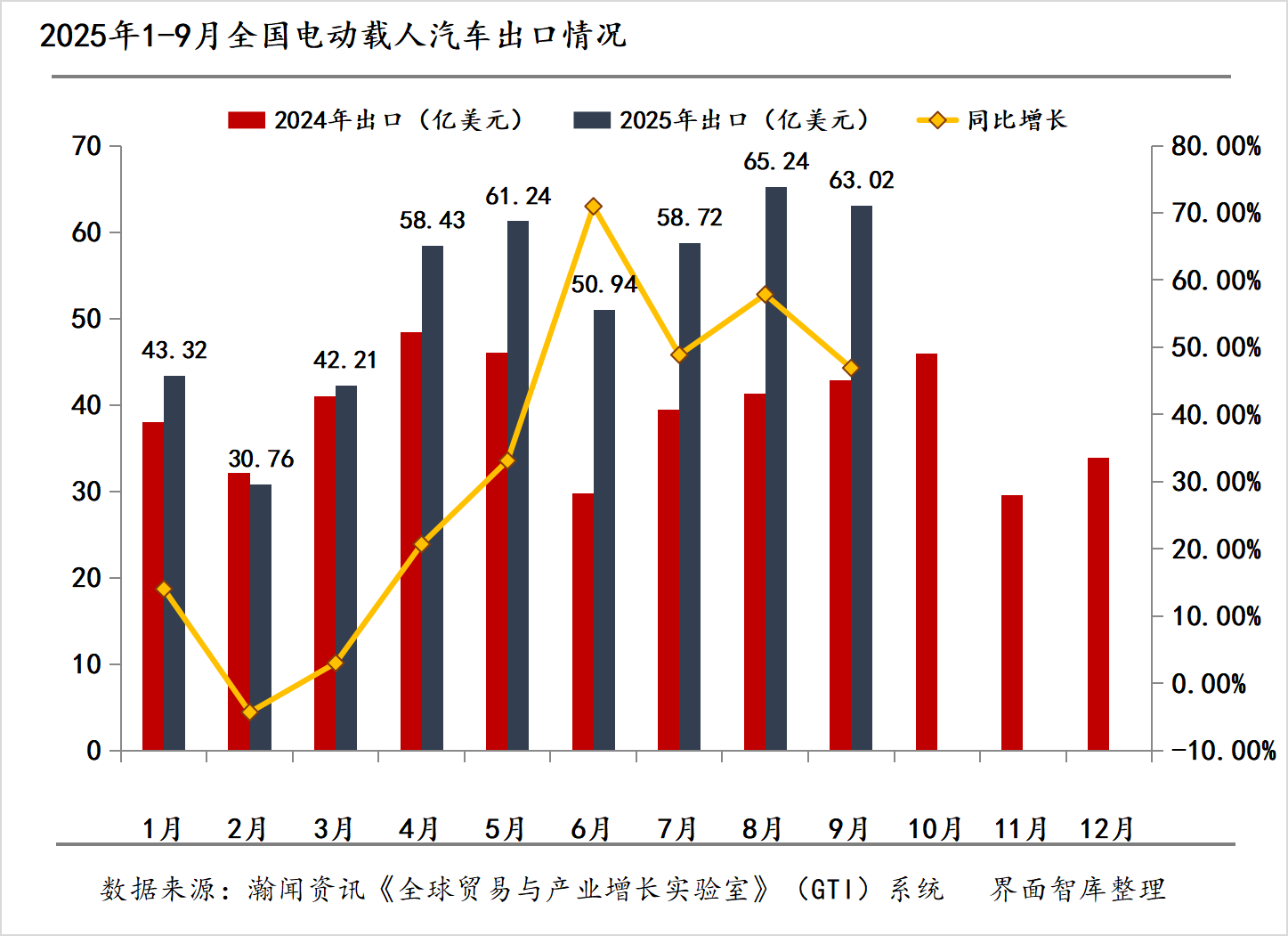 三、9月电动载人汽车出口延续多元格局,南美等新兴市场增速领跑