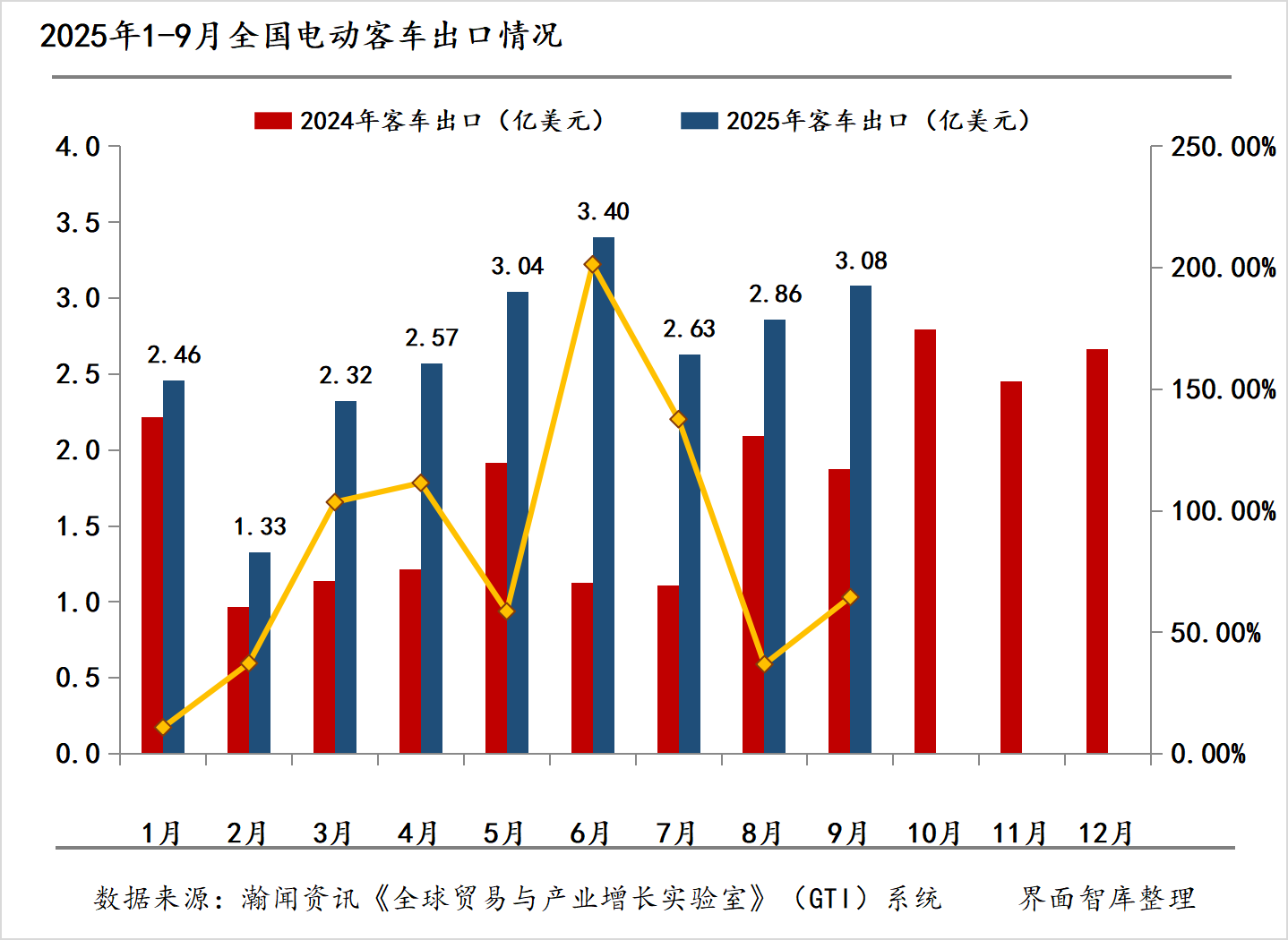 一、9月电动载人汽车出口增速高位回落,客车量价齐升