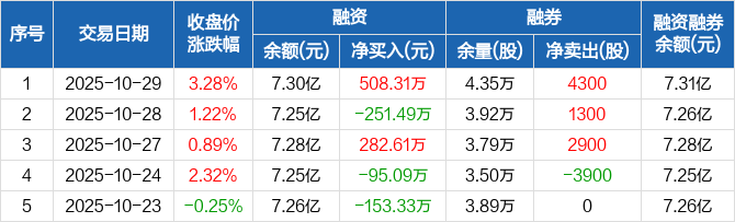 精工科技:融资净买入508.31万元,融资余额7.3亿元(10-29)