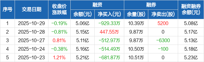 金禾实业:融资净偿还929.33万元,融资余额5.06亿元(10-29)