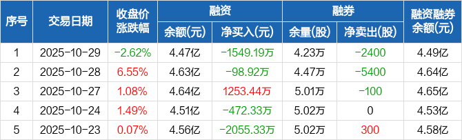 建设工业:融资净偿还1549.19万元,融资余额4.47亿元(10-29)