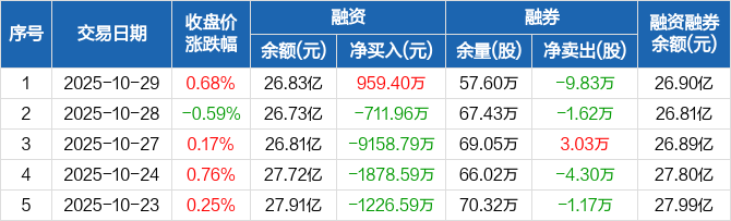 欧菲光融资融券信息显示,2025年10月29日融资净买入959.4万元;融资余额26.83亿元,较前一日增加0.36%。