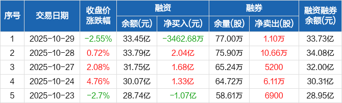 长盈精密:融资净偿还3462.68万元,融资余额33.45亿元(10-29)