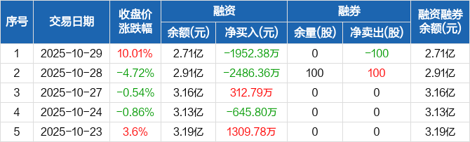 通润装备:融资净偿还1952.38万元,融资余额2.71亿元(10-29)