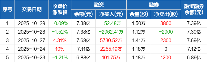 广合科技:融资净偿还52.48万元,融资余额7.38亿元(10-29)