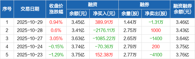 利安隆:融资净买入389.91万元,融资余额3.45亿元(10-29)