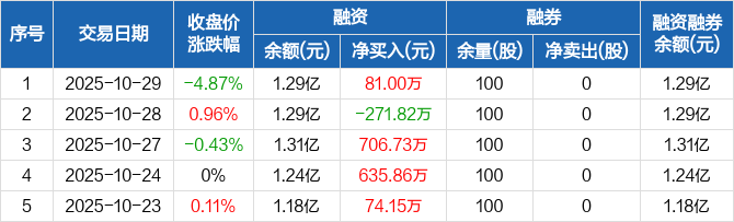 金埔园林:融资净买入81万元,融资余额1.29亿元(10-29)