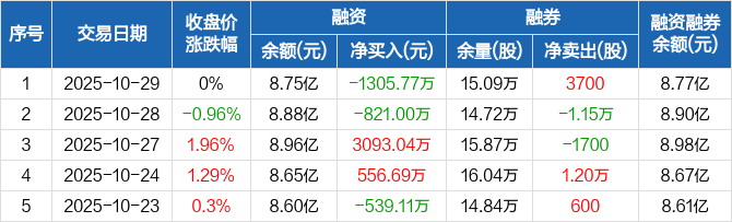联创电子:融资净偿还1305.77万元,融资余额8.75亿元(10-29)