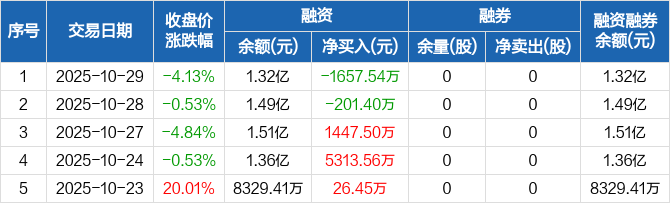 荣信文化:融资净偿还1657.54万元,融资余额1.32亿元(10-29)