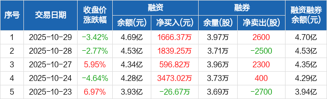 凯盛新材:融资余额4.69亿元,创历史新高(10-29)
