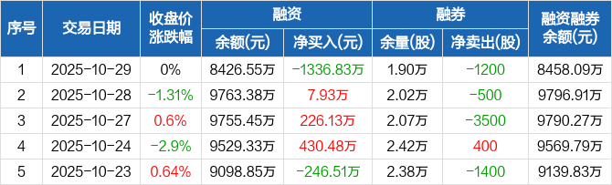 新乳业:融资净偿还1336.83万元,融资余额8426.55万元(10-29)