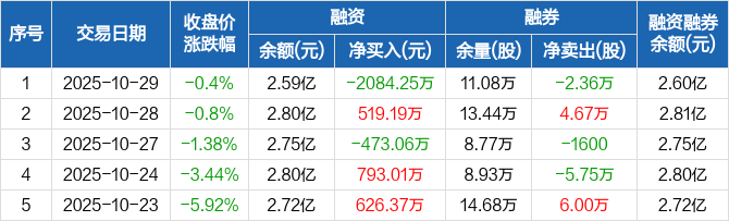 北新路桥:融资净偿还2084.25万元,融资余额2.59亿元(10-29)