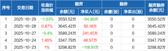 迈拓股份:融资净偿还94.89万元,融资余额3550.52万元(10-29)
