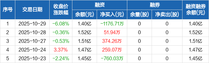 奇德新材:融资净偿还1176.71万元,融资余额1.4亿元(10-29)