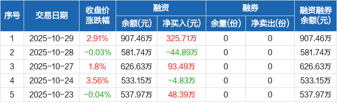 创业板ETF博时融资融券信息显示,2025年10月29日融资净买入325.71万元;融资余额907.46万元,较前一日增加55.99%。