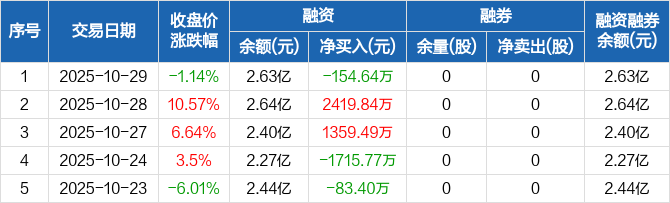 超捷股份:融资净偿还154.64万元,融资余额2.63亿元(10-29)