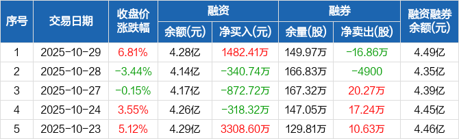 天山铝业:融资净买入1482.41万元,融资余额4.28亿元(10-29)