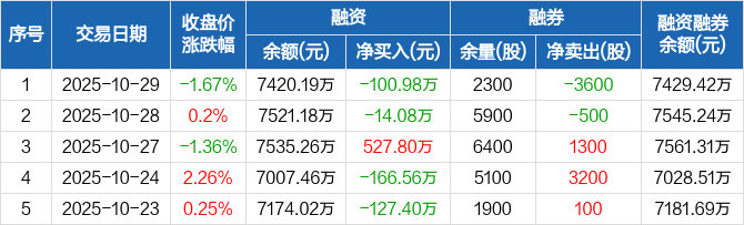 光大同创:融资净偿还100.98万元,融资余额7420.19万元(10-29)