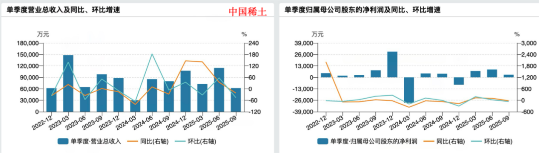 从单季来看,北方稀土第三季度实现营收114.25亿元,同比增长33.32%;归母净利润为6.1亿元,同比大幅增长69.48%。