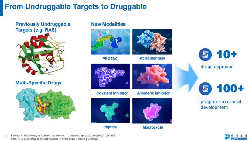从需求端来看,新分子浪潮的澎湃动力不容忽视。靶向蛋白降解、分子胶、共价抑制剂、别构抑制剂以及多肽、复杂大环化合物等新分子类型不断涌现,逐步攻克一个个曾经“不可成药靶点”。