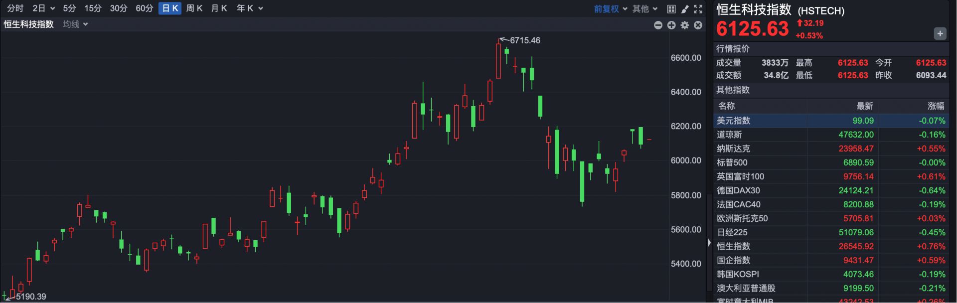 恒生科技指数开盘报6125.63点,上涨32.19点,涨幅0.53%。
