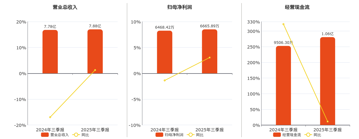 公司营业总收入为7.88亿元,在已披露的同业公司中排名第61。归母净利润为6665.89万元,在已披露的同业公司中排名第59。经营活动现金净流入为1.06亿元,在已披露的同业公司中排名第62。