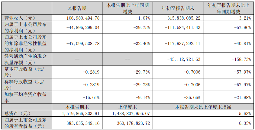 10月29日晚间,广生堂(300436)发布的2025年三季报显示,公司前三季度净利同比亏损扩大。财务数据显示,今年前三季度,广生堂实现营业收入3.16亿元,同比下降3.21%;归母净利润-1.12亿元,同比下降57.96%;扣非后净利润为1.18亿元,同比下降40.81%,延续自2021年以来的亏损态势。