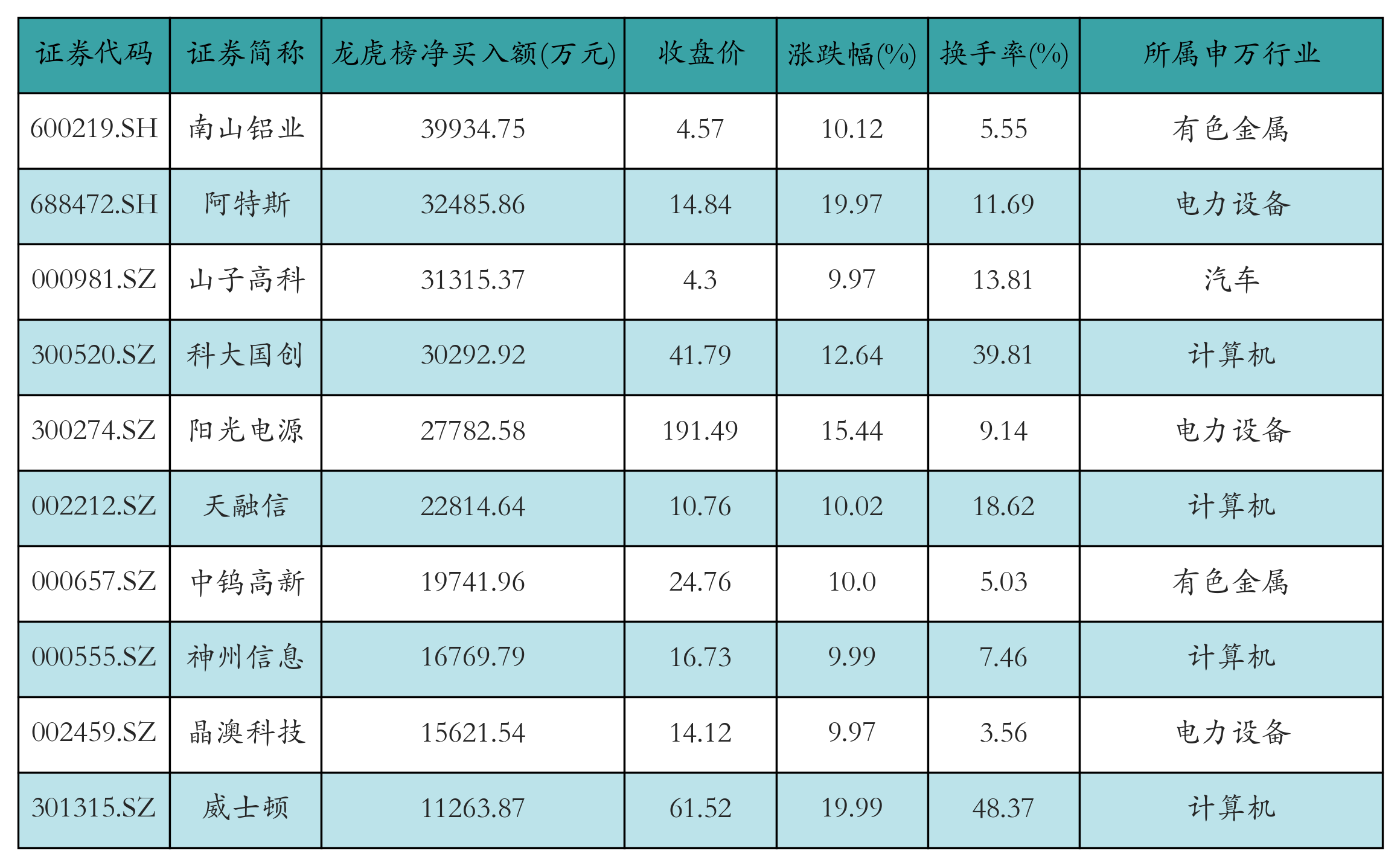 昨日龙虎榜营业部净买入额前10详情见下表: